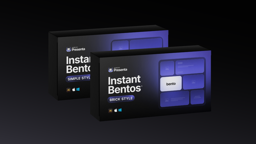 Unlock advanced customization, 4 unique layout styles, and full control with Presenta™ Bento Generator — our complete bento layout tool for Adobe Illustrator.