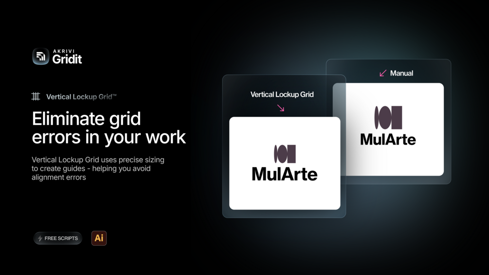Vertical Lockup Grid™ is an Adobe Illustrator Script that helps you create perfectly spaced vertical lockups with ease. No more guesswork or uneven results.